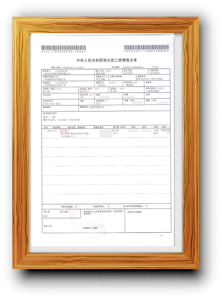 ? 水療機進口報關單